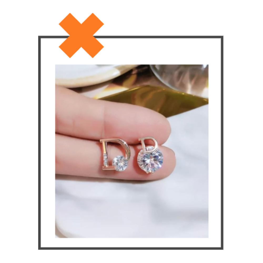 Deze lieve oorknopjes hebben de vorm van de letter D en zijn voorzien van hele strass steentjes.. Beide oorbellen zijn niet gelijk wat het juist spannend en afwisselend maakt.