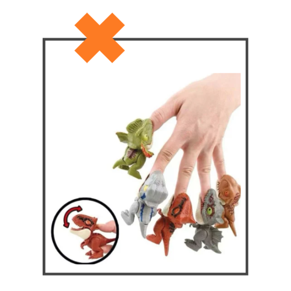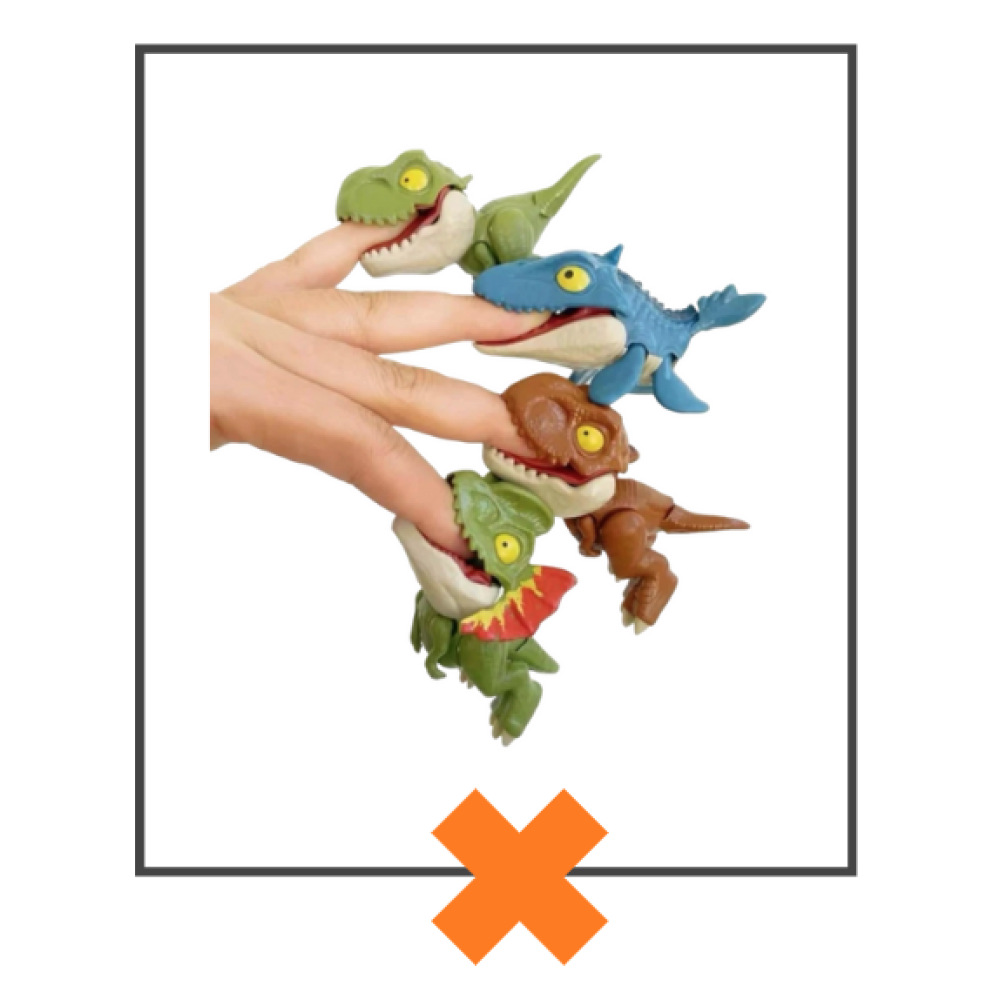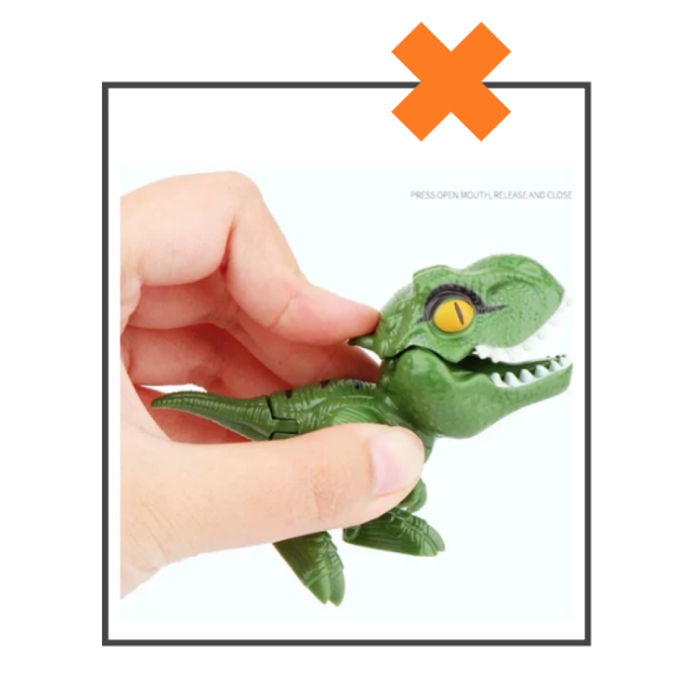 Dit Dinosaurus vinger poppetje is een uniek en leuk speeltje! Deze dino kun je namelijk (pijnloos) in je vinger laten bijten. Z'n bek werkt als een soort knijpertje waardoor je de dino overal aanvast kunt hangen, met elkaar kunt laten vechten of in je vinger kan laten bijten. Ook zijn alle pootjes en z'n staart beweegbaar. Echt een heel leuk speeltje en er zijn wel 20 verschillende soorten verkrijgbaar dus ook een heel leuk spaarartikel.