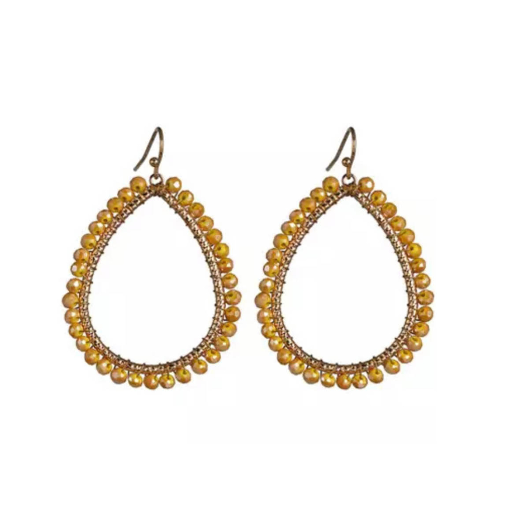 Druppel oorbellen dun kralen cognac