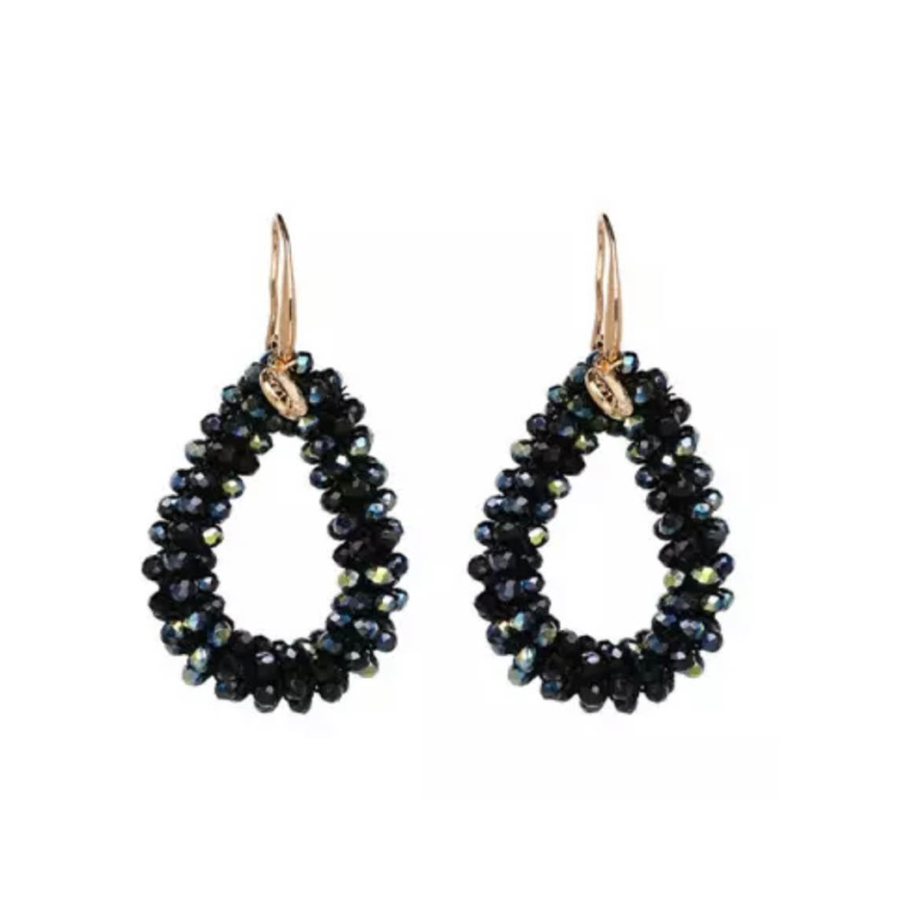 De grote oorbellen zijn een echte eye catcher. De druppel oorbellen hebben dikke kralen. De kralen hebben een glinstering die een groen/blauwe gloed geven