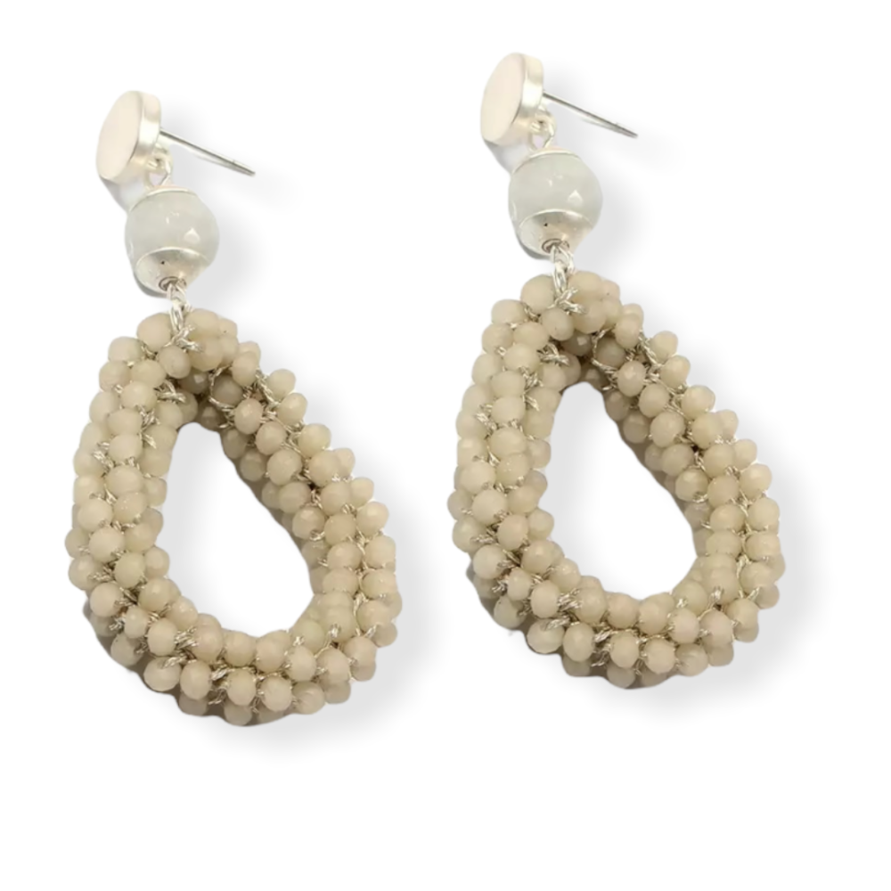 Deze oorbellen hebben een mooi ovale vorm gemaakt van allemaal mooie kraaltjes in een grijze kleur. Het zijn oorstekers en zijn echt een sieraad in het oor