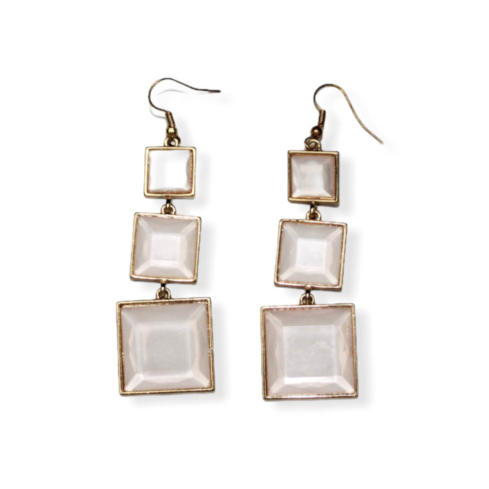 Deze grote oorbellen zijn echt ikleurrijk en chique, Aan de hangers zitten licht roze blokjes verbonden met schakeltjes.