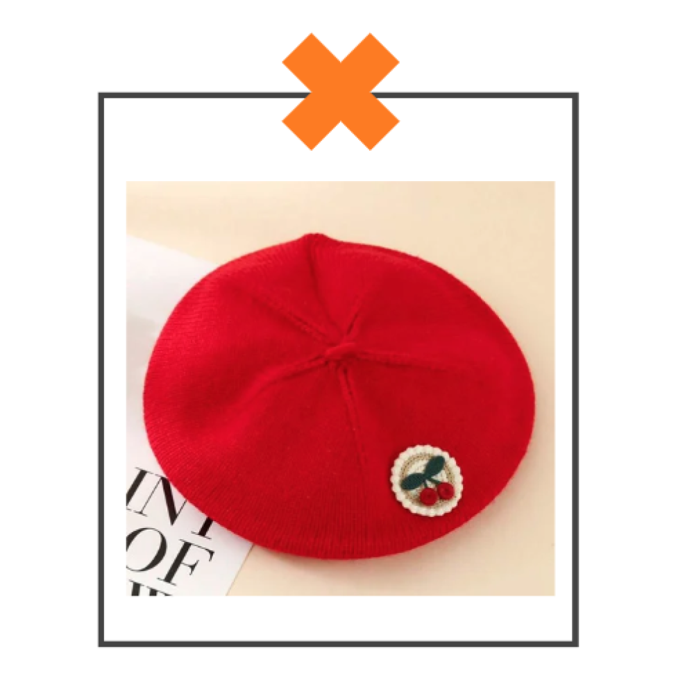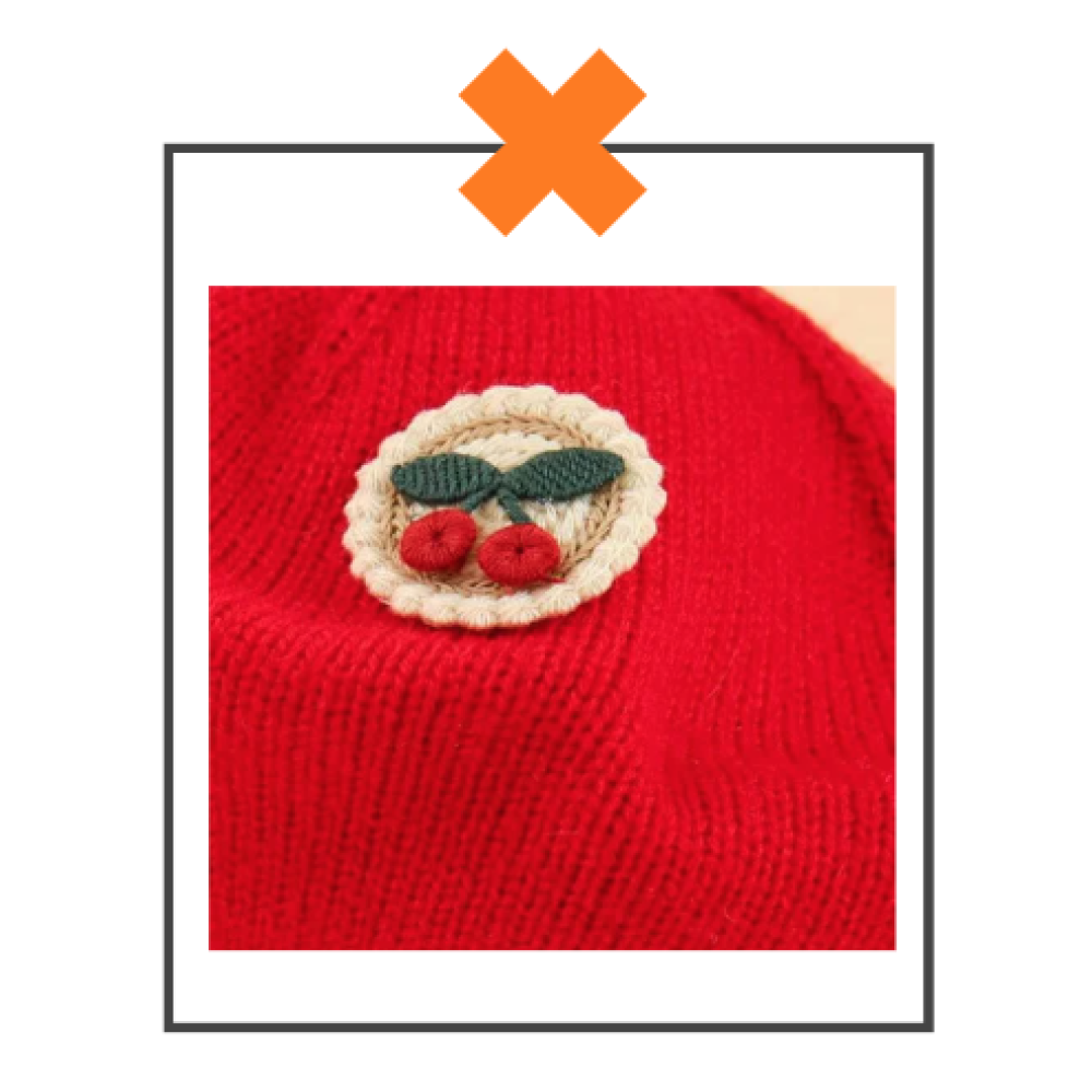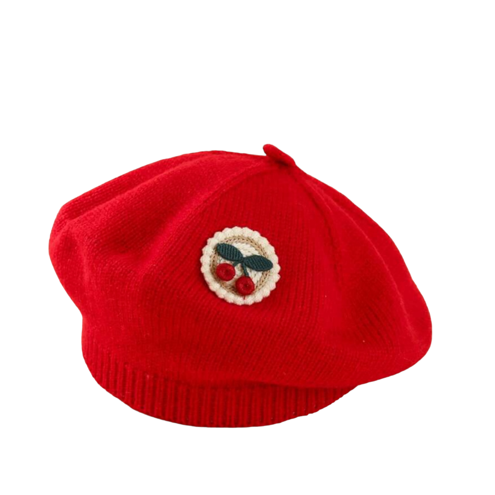 leuke kinder baret in rood uni met een lieve kersjes applicatie.
