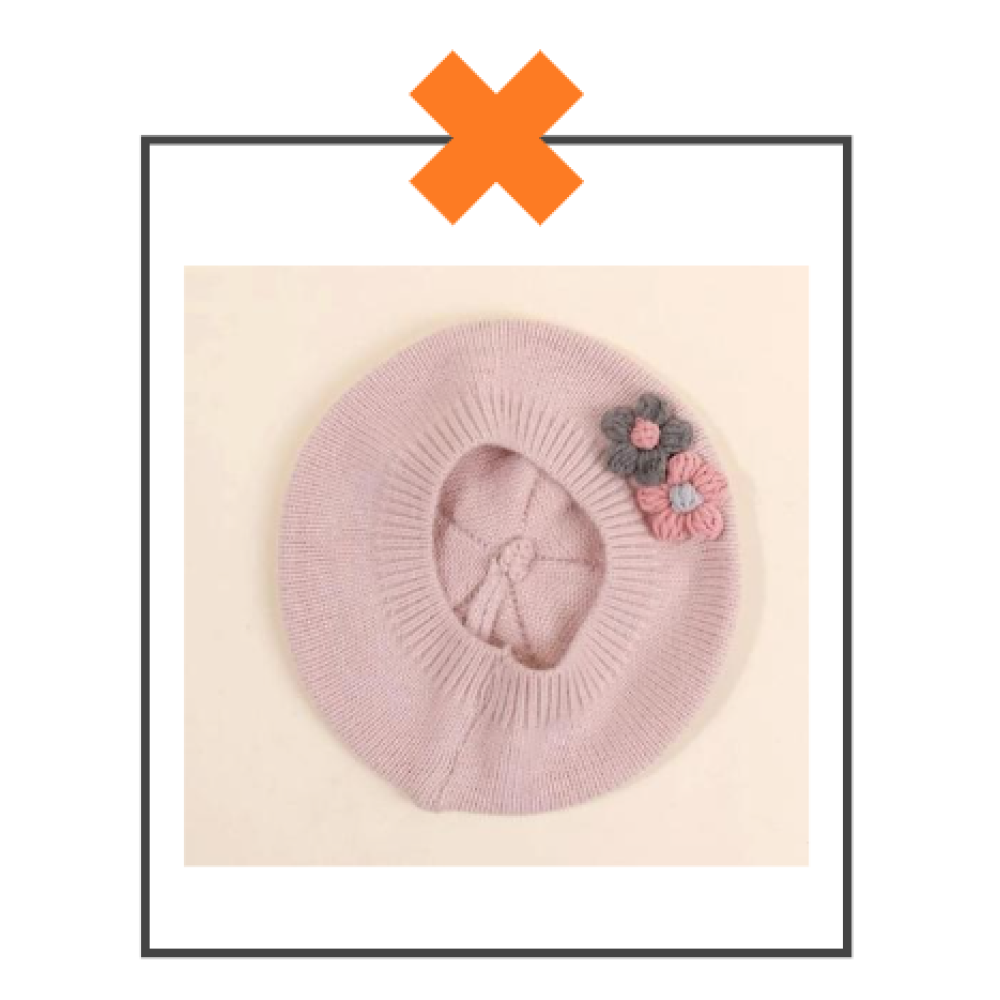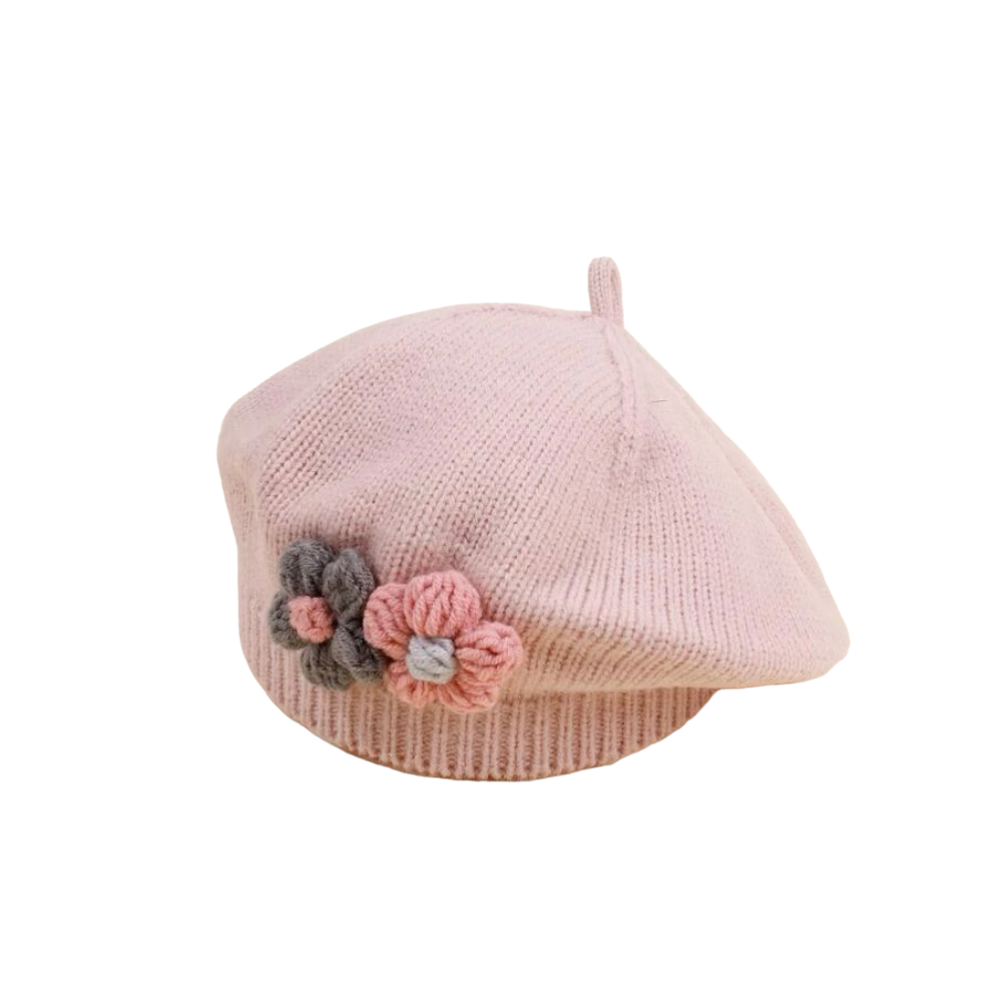 leuke kinder baret in een roze kleur met een bloemenlijn