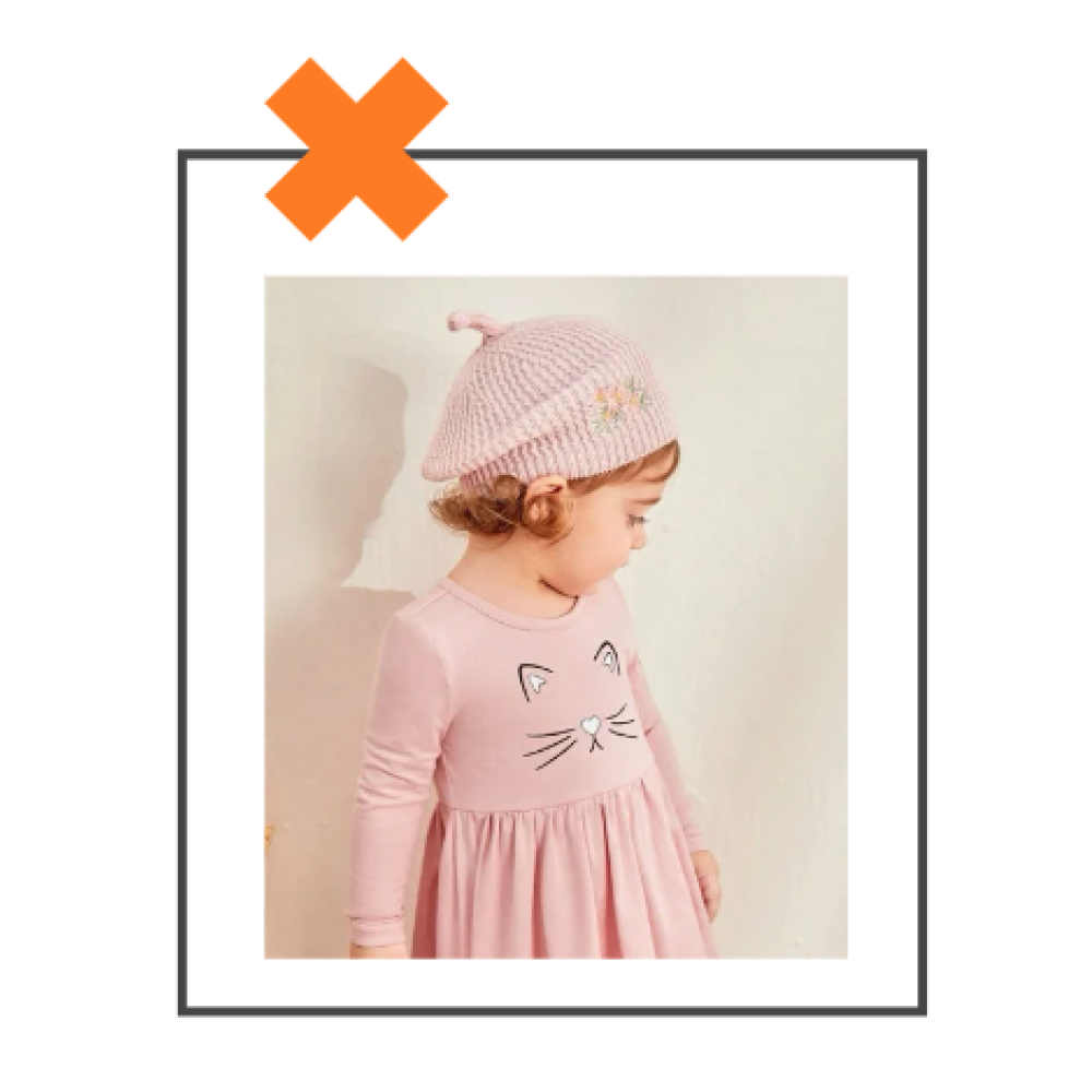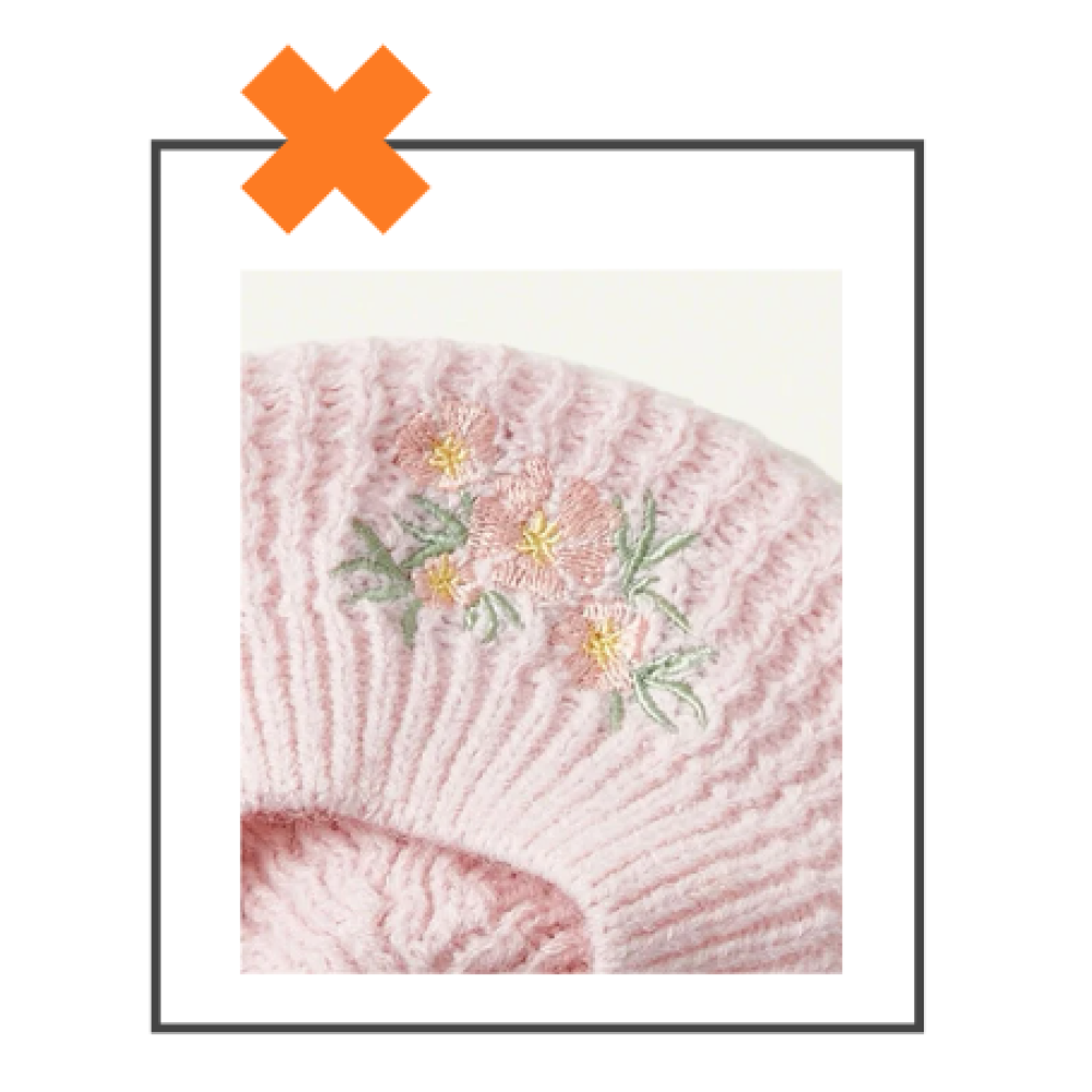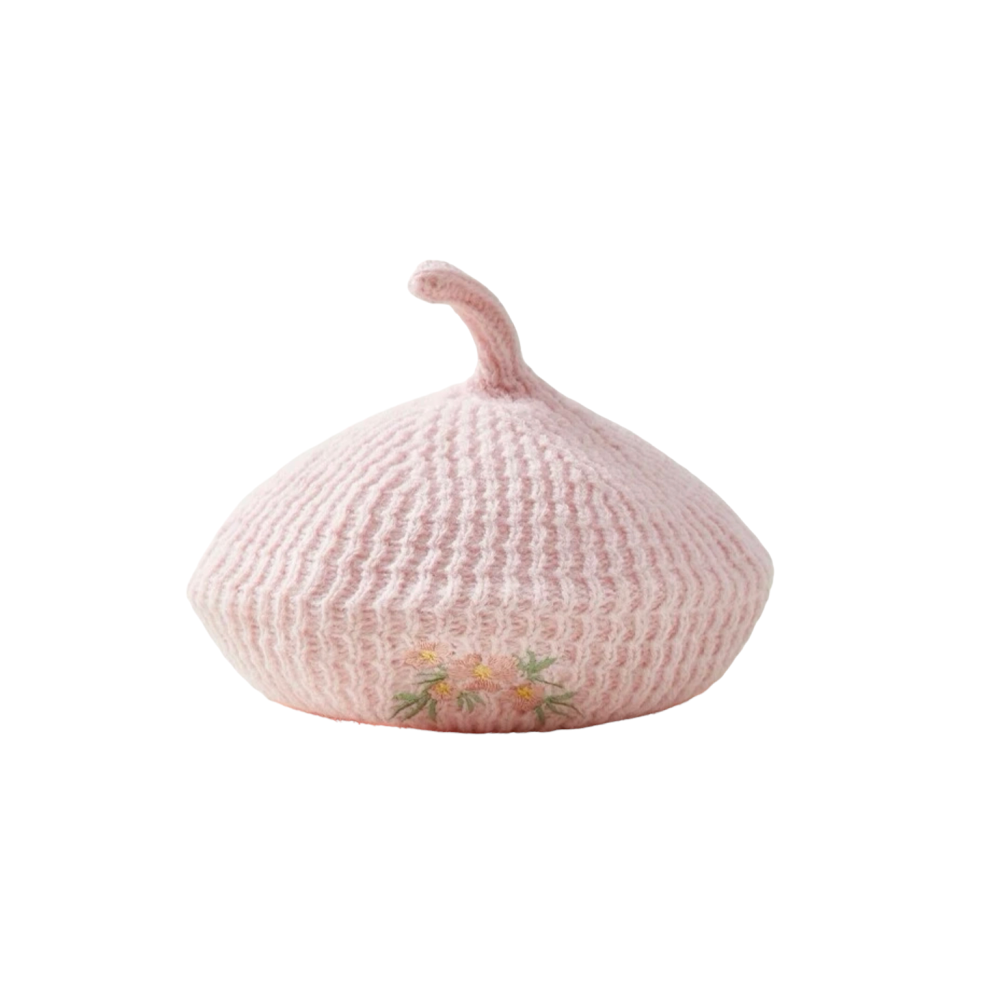 leuke kinder baret in een lichtroze kleur met geborduurde bloemen