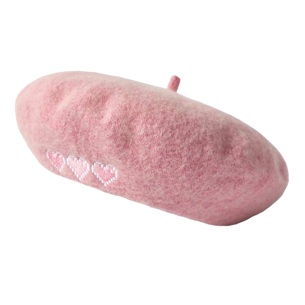 leuke kinder baret in een lichtroze kleur met roze hartjes