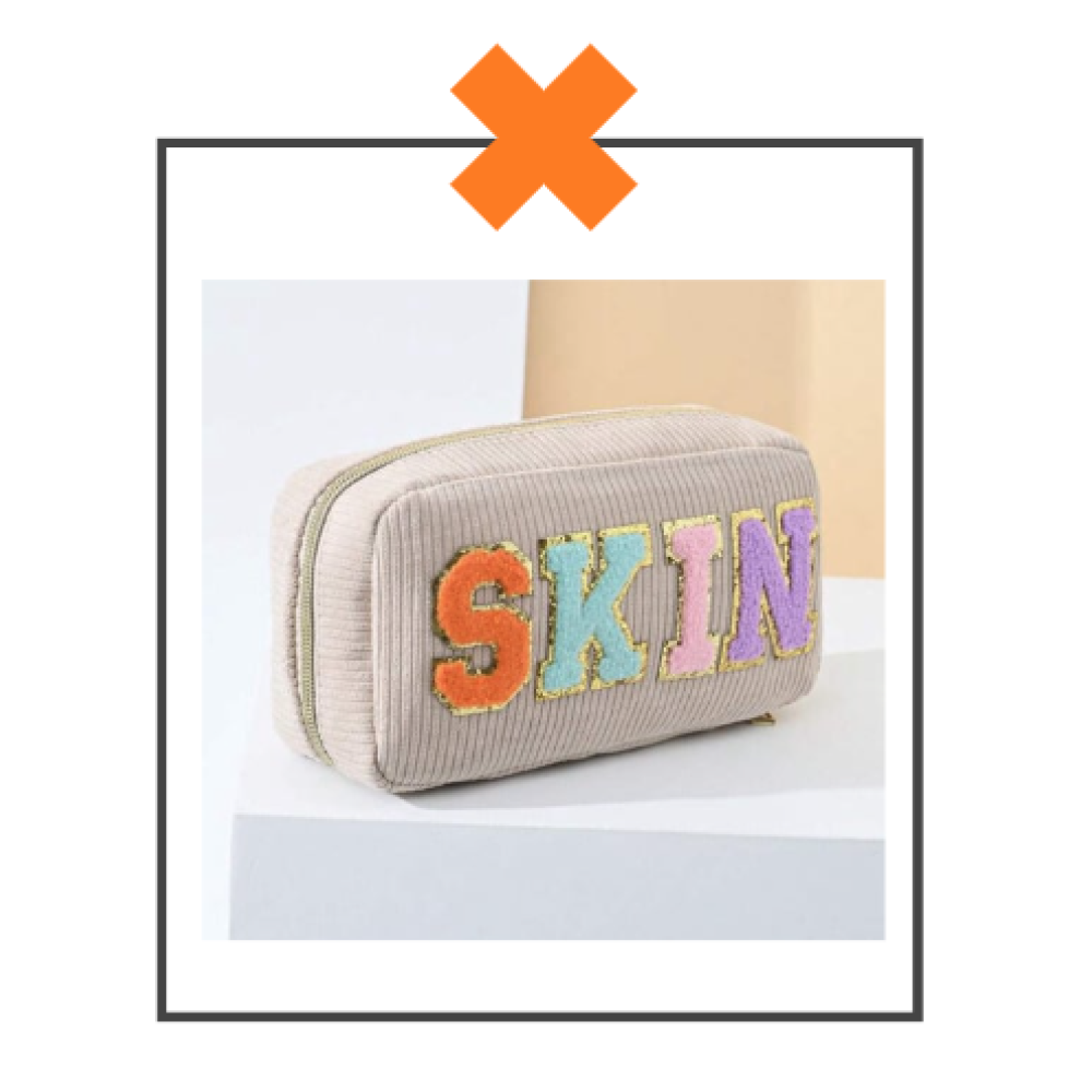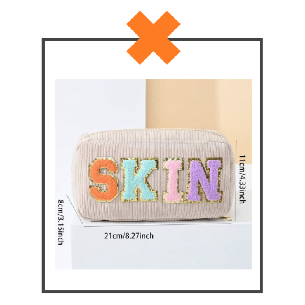 Make-up tas/toilettas SKIN camel gekleurde letters