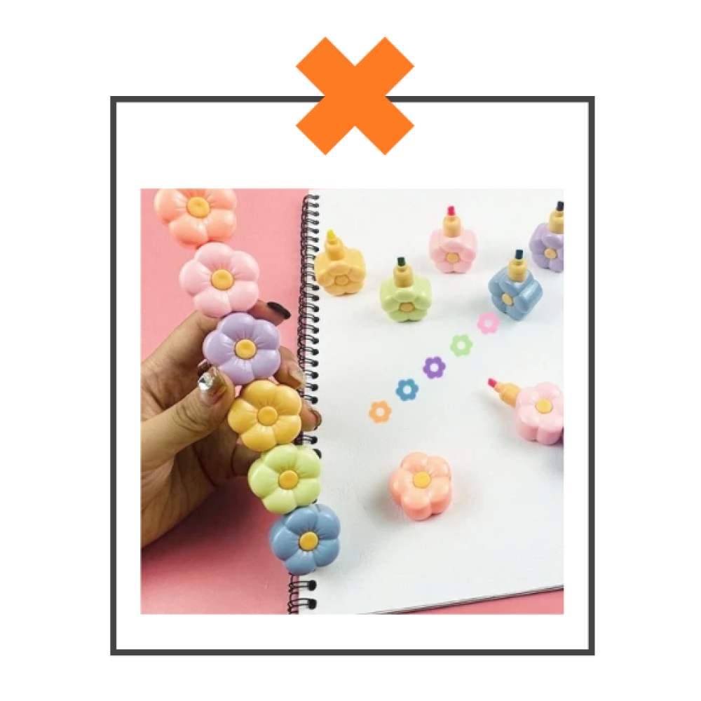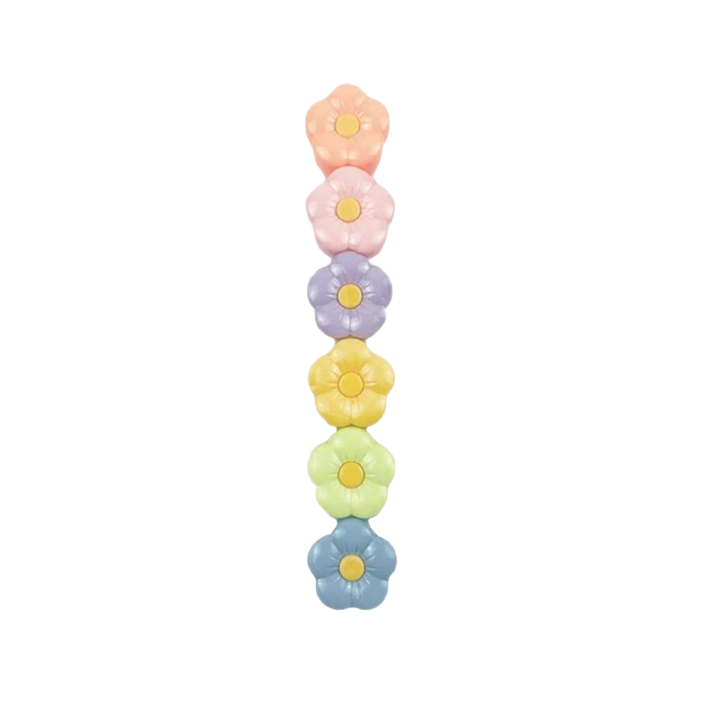 Super leuke markers voor kinderen.. in de vorm van lieve bloemetjes. Samen vormen ze een bloemen 'toren' als je de verschillende kleuren markers op elk drukt..