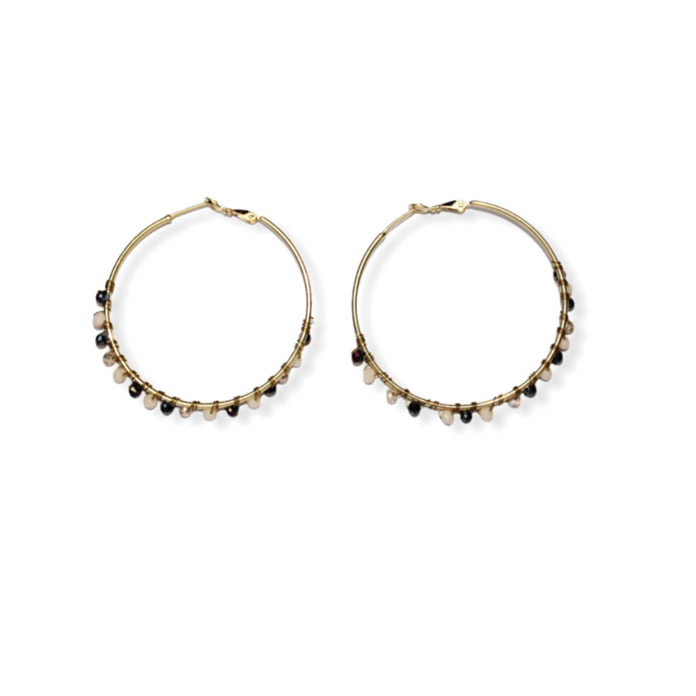 Deze grote ringen oorbellen zijn bohemian en stijlvol. Ze zijn goudkleurig en hebben kleine kraaltjes.