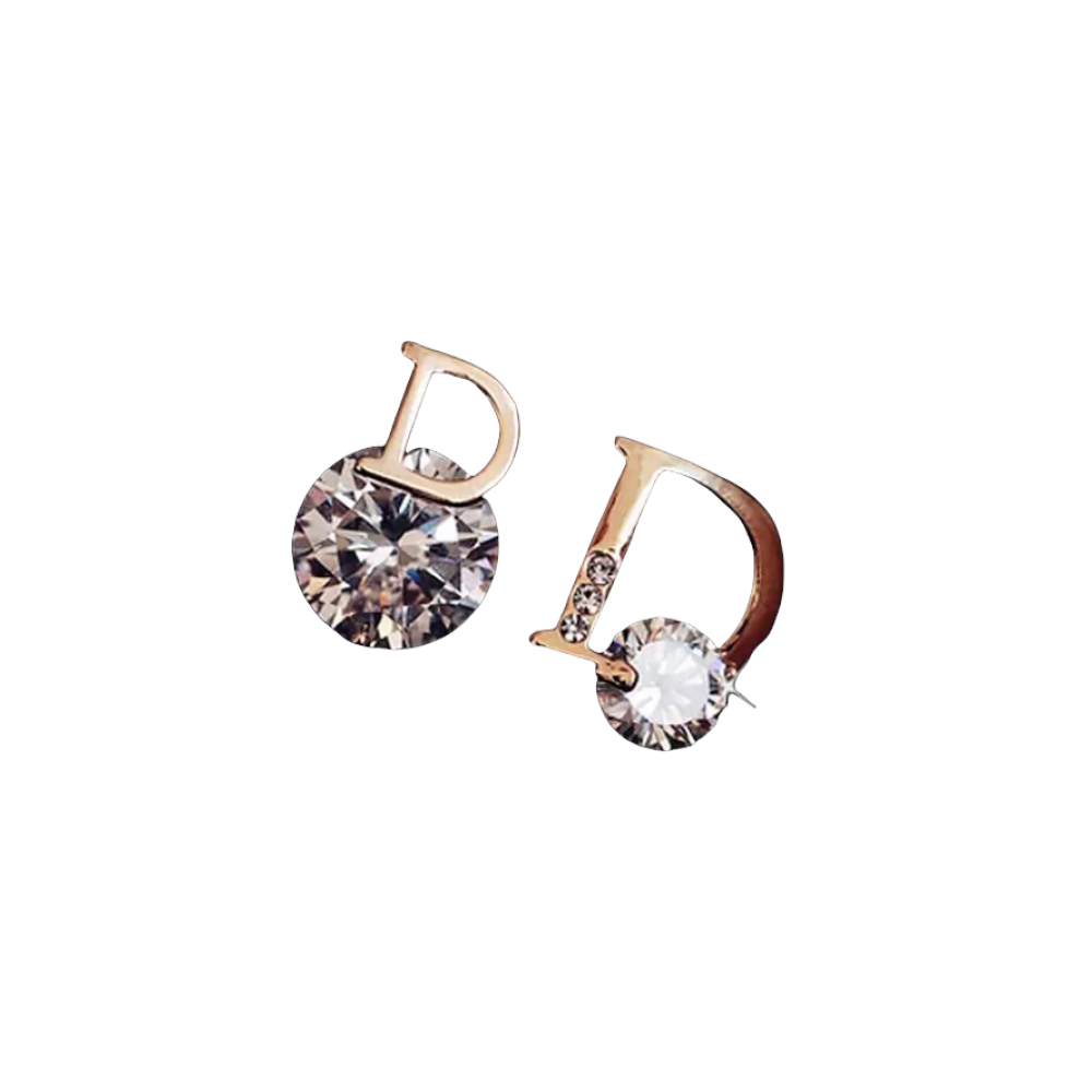 Deze lieve oorknopjes hebben de vorm van de letter D en zijn voorzien van hele strass steentjes.. Beide oorbellen zijn niet gelijk wat het juist spannend en afwisselend maakt.