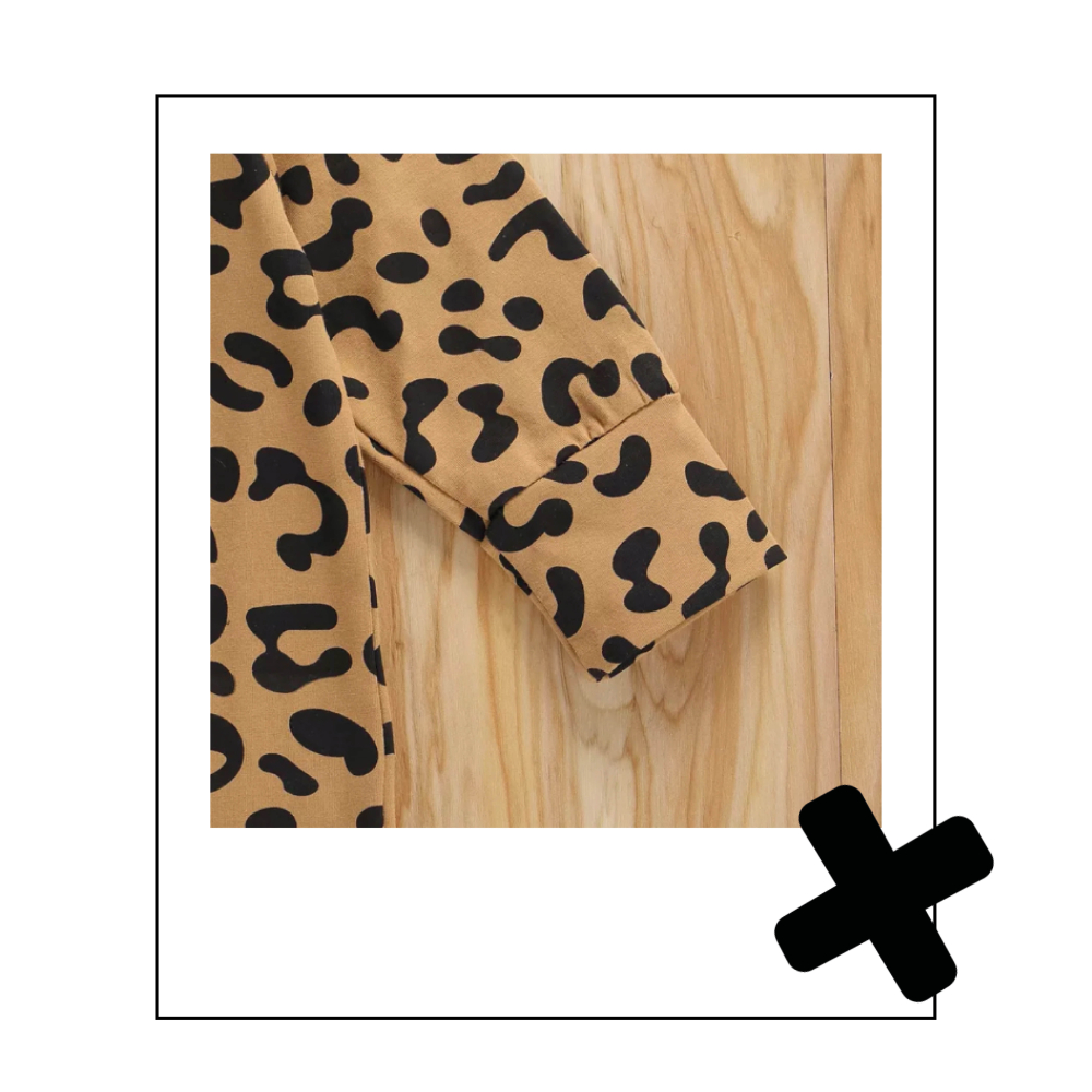 Dit super leuke pakje heeft drukknoopjes onderaan en aan de achterkant, zodat het pakje makkelijk aan en uit kan. Ook heeft het pakje lange mouwen en een super stoere panterprint.