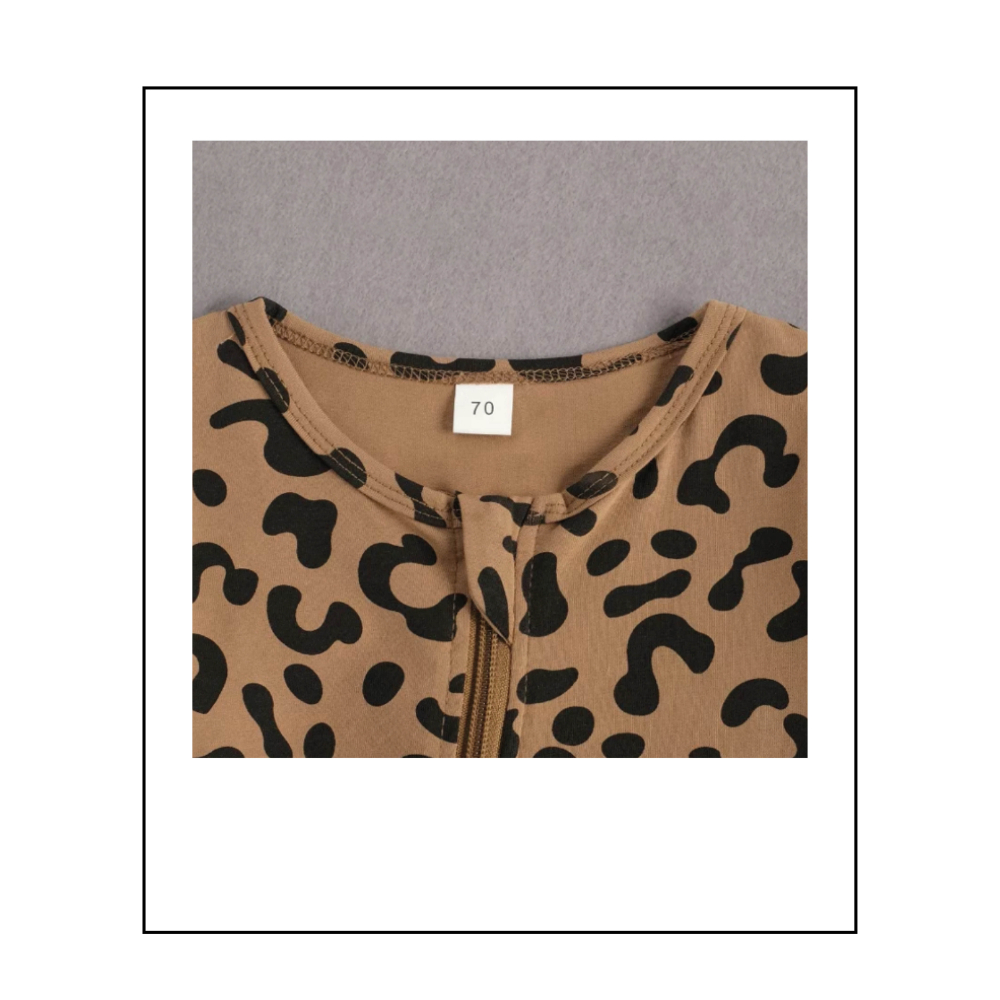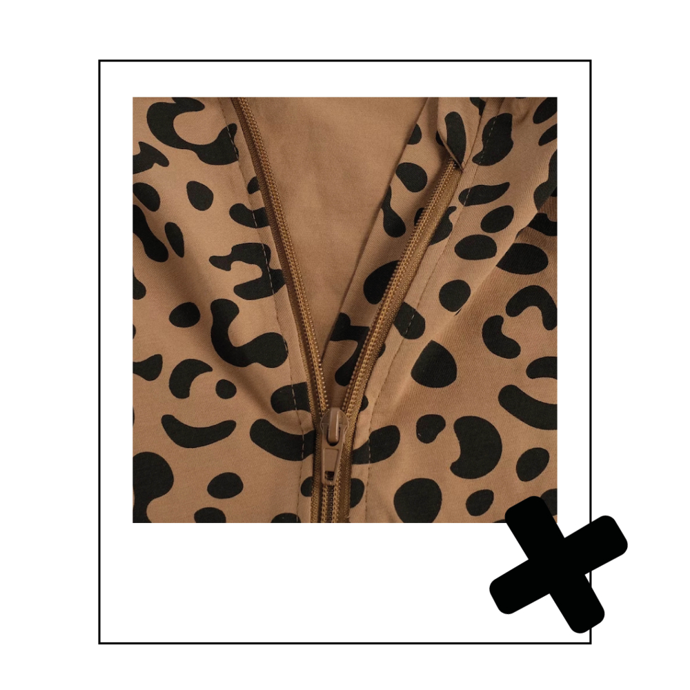 Dit super leuke pakje heeft deen rits, zodat het pakje makkelijk aan en uit kan. Ook heeft het pakje lange mouwen en een super stoere panterprint.