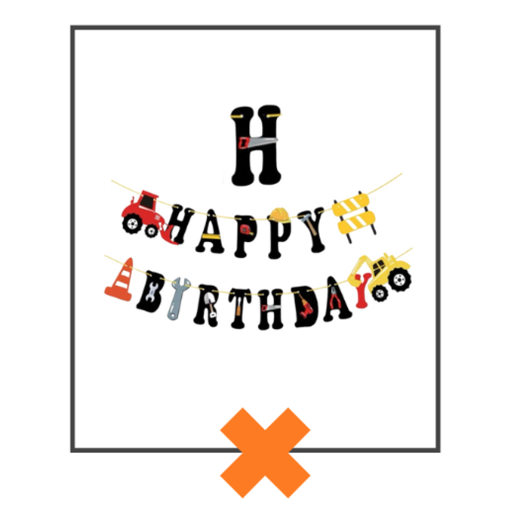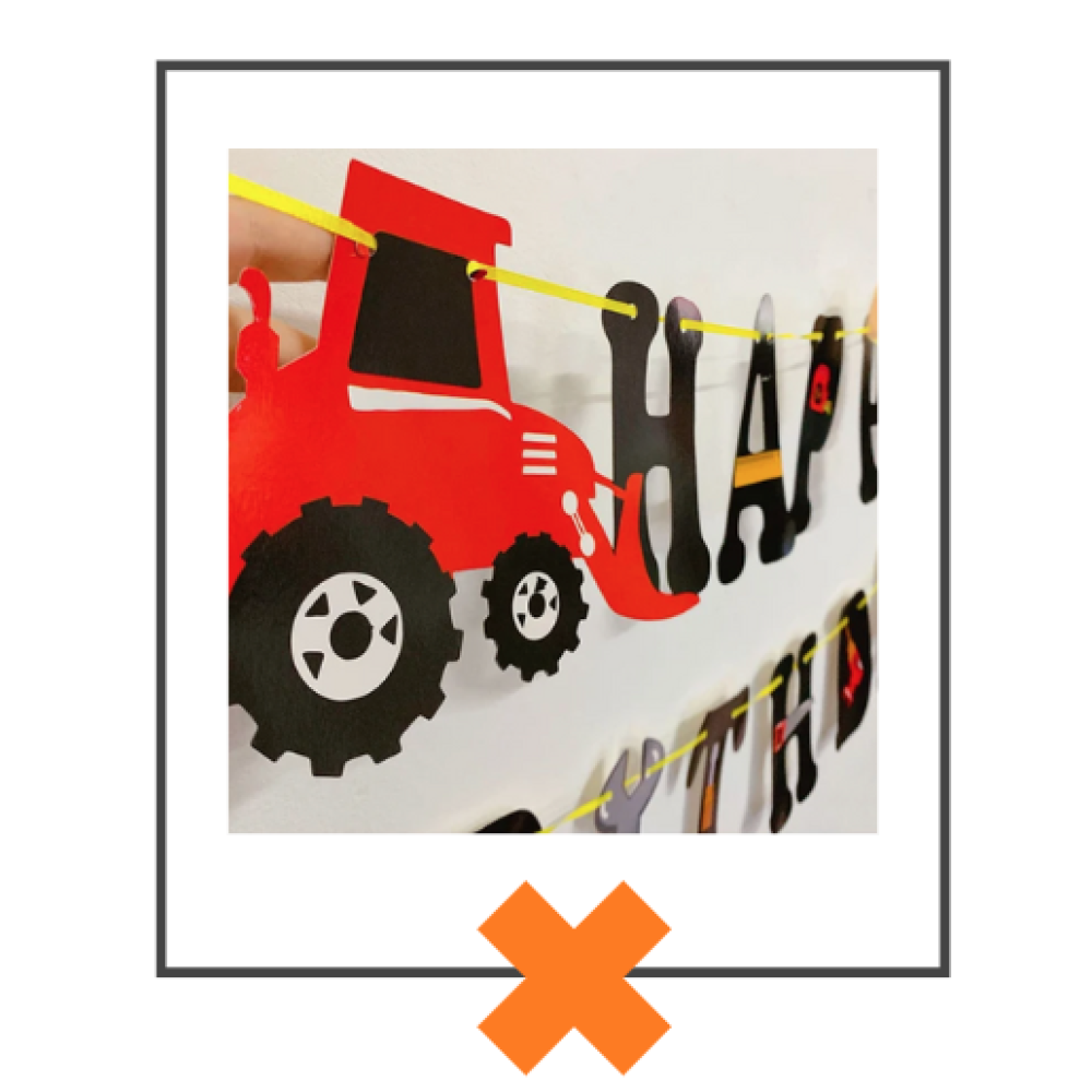 Super leuke papieren slinger Graafmachines voor jongens. Het DIY pakket bestaat uit letters happy birthday, graafmachines en satijnenband .