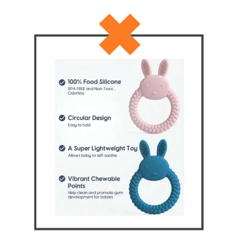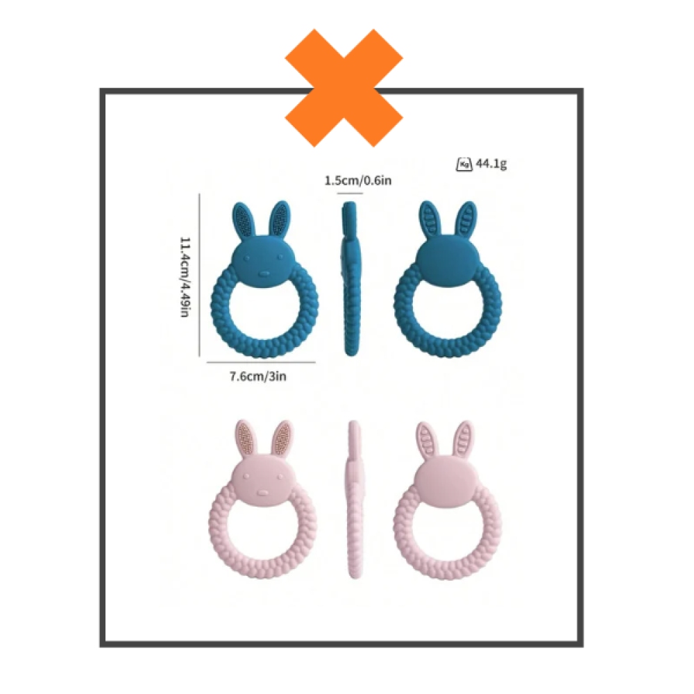 Superschattige siliconen baby bijtring.. superhandig.. en makkelijk vast te houden voor je kleintje.BPA-vrij en makkelijk schoon te maken… De bijtring is 10 x 5 cm